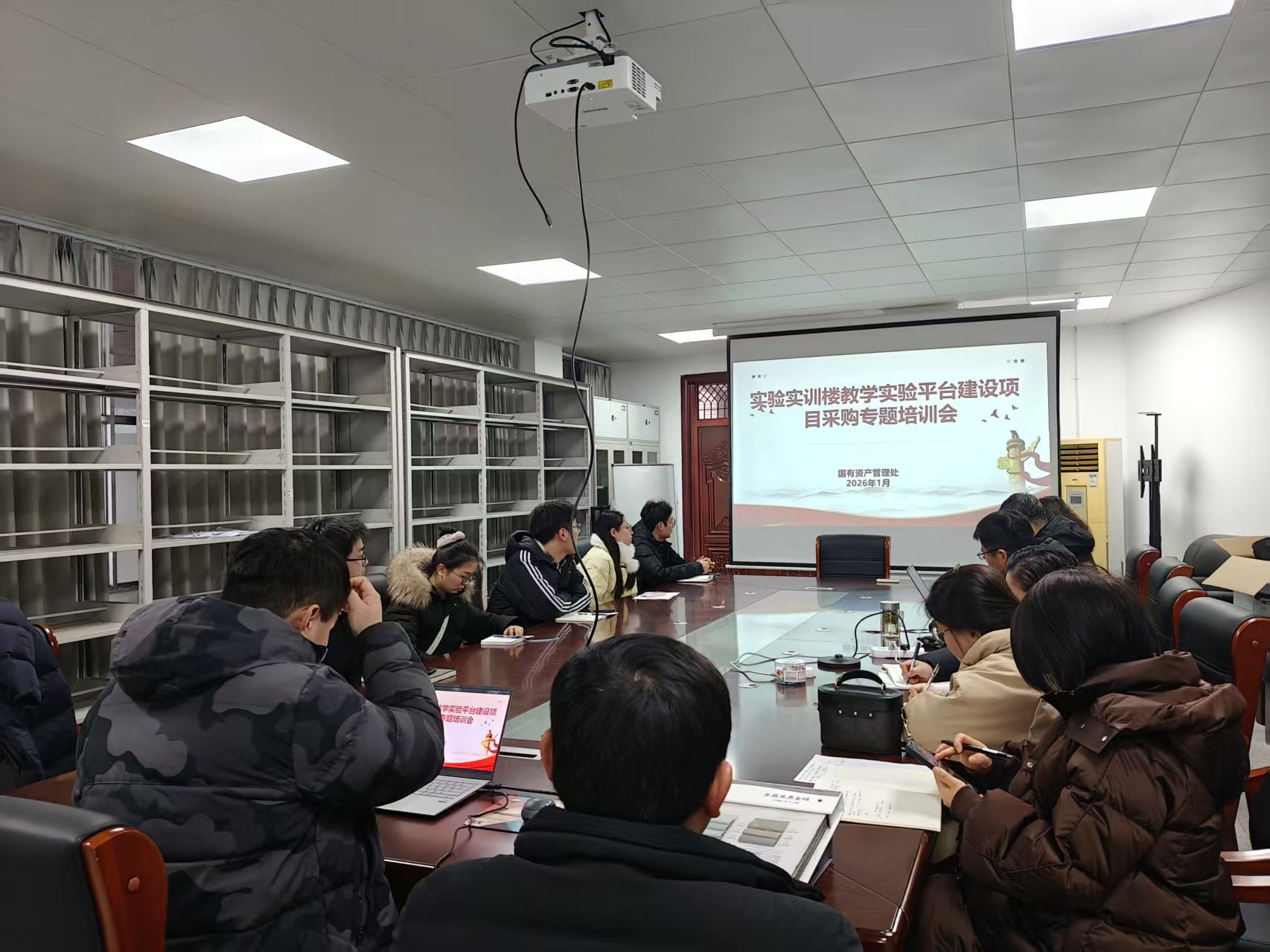 为扎实推进学校新建实验实训楼教学实验平台建设采购项目有序实施,1月30日下午,国有资产管理处组织召开教学实验平台建设项目采购专题培训会,培训会由国有资产管理处负责人主持,各平台建设项目负责人参加本次培训。